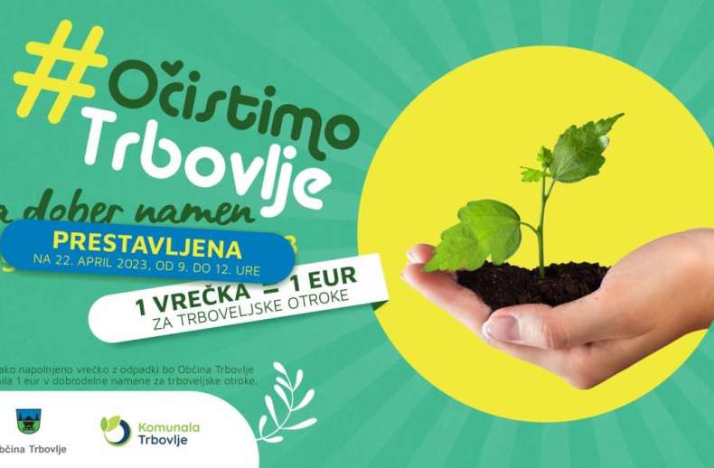 Čistilna akcija Očistimo Trbovlje 22. aprila 2023, boste lahko občani od 9. do 12. ure material za čiščenje (rokavice, vreče za smeti) prevzeli na treh lokacijah po mestu: Zavod za mladino in šport Trbovlje, Občina Trbovlje, PGD Trbovlje – mesto. Vljudno vabljeni, da se nam pridružite pri čistilni akciji