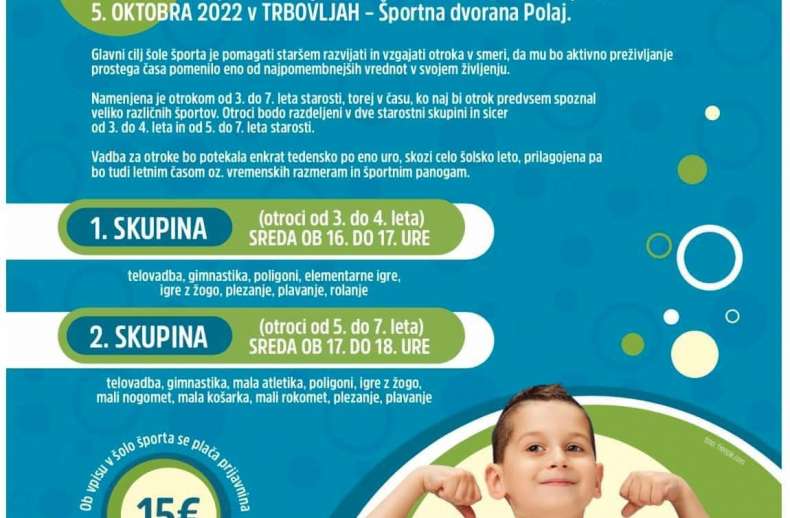 ŠOLA ŠPORTA S šolo športa pričenjamo v sredo, 9.11. ob 16. uri v Športni dvorani Polaj. Potrebne so predhodne prijave! https://zmst.si/prijave-za-solo-sporta/ Za več informacij in prijave pišite na info@zmst.si