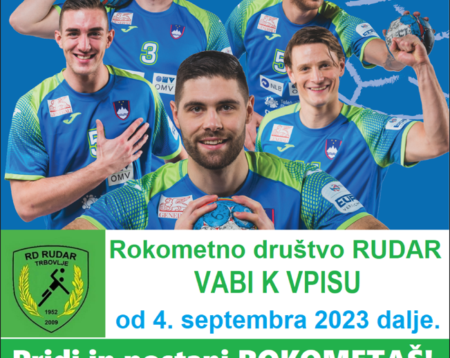 Si želiš postati rokometaš? Sedaj imaš priložnost, da uresničiš svoje sanje! Rokometno društvo Rudar Trbovlje vabi k vpisu vse nadebudne fante: Letniki 2013 – 2018: Torek, od 16.00 do 17.30 v OŠ Trbovlje Letniki 2010 – 2012: Ponedeljek, od 15.00 do 16.30, v dvorani Polaj Več informaciji na: rdrudar.trb@gmail.com