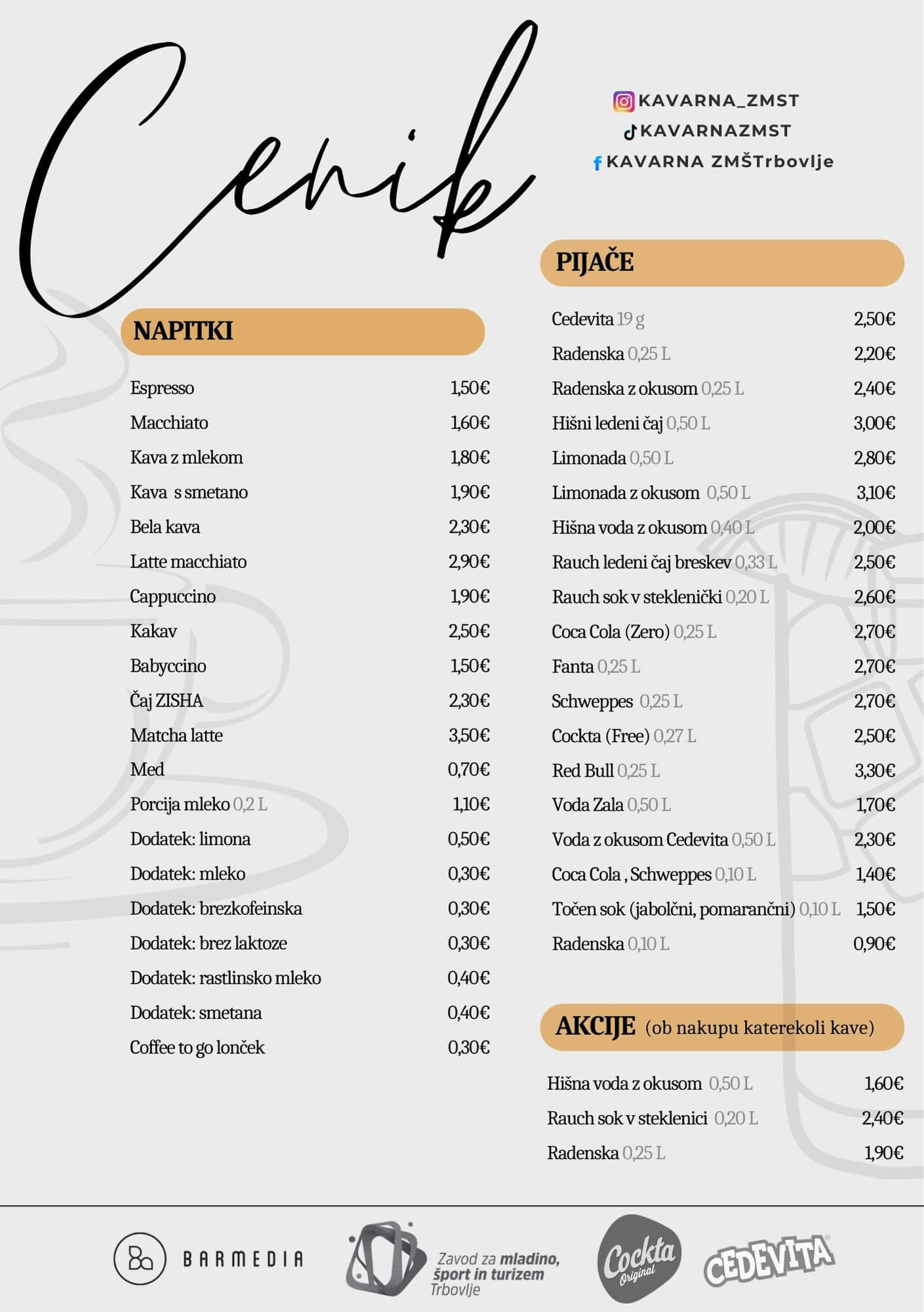 Prostor, kjer se dan začne z odlično kavo in nadaljuje v večerno druženje ob koncertih in dogodkih. Vabljeni, da nas obiščete in doživite našo ponudbo ter vzdušje v živo.