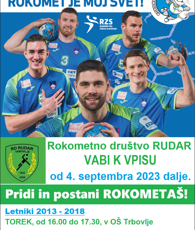 Rokometno društvo Rudar Trbovlje vabi k vpisu vse nadebudne fante: